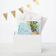 Cet élégant sac cadeau de mariage de destination présente une magnifique aquarelle illustration d'un ananas sur un bel arrière - plan bleu aquarelle. La typographie est classique mais moderne. C'est le design parfait pour un mariage tropical sur le thème de la plage ou de destination. Consultez la collection pour plus d'éléments de coordination.