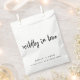 Simples, élégant "sauvagement en amour" sac de mariage privilégier dans un style design minimaliste moderne avec une typographie manuscrite en noir et blanc classique écrit dans un style décontracté informel. Le texte peut facilement être personnalisé pour un design unique et unique pour votre journée spéciale. Un mariage parfait pour les amoureux de la nature, du jardinage et des fleurs (graines de fleurs sauvages non incluses) !