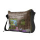 Sac messenger mettant en vedette KLeighE, qui travaille sur l'art pour un autre livre sur l'ordinateur, et Dharma, qui lit le nouveau livre d'images pour enfants "A Journey Through Alphabet Land" à Pinkie bear et Bray bear dans la bibliothèque de la cabane.