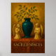 This serene still life captures a moment of divine tranquillity, featuring two graceful angels in prayer positioned on either side of a striking emerald vase filled with delicate foliage. The warm, golden background creates an atmosphere of sacred reverence, while the angels' gentle poses and flowing robes evoke a sense of peaceful devotion. The rich teal of the ceramic vase provides a beautiful contrast against the amber tones, symbolizing the earthly vessel that holds life and growth under heavenly protection. This piece invites quiet contemplation and would bring a sense of spiritual calm to any sacred space or home sanctuary.