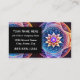 Electric neon mandala shapes adorn the background of this fully customizable business card template. Colourful geometric shapes glow behind shadowed black box with white text. Perfect for professional executives, consultants, reiki and Feng Shui practitioners, entertainers, performers, self-employed artists and designers, volunteers for non-profit groups, etc, etc, etc.