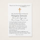 These cards are the perfect size to distribute at funerals. Has an entire poem at the back. The price was reasonable for 100 cards and they were delivered promptly. I am very satisfied with this product and will purchase all of my paper products from Zazzle. Printing is perfect. The back of the card has a poem and a verse that is easy to read. Very happy with this product