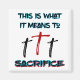 THIS IS WHAT IT MEANS TO SACRIFICE. Three Crosses with the middle one in Red depicting the Blood of the Lamb shed blood on the Cross.