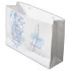 Montrez votre appréciation à vos mariages avec ce sac cadeau de faveur de mariage. Parfait pour remplir avec un cadeau spécial pour montrer votre appréciation. Un joli couple d'oiseaux en ligne dessin graphique d'une cage d'oiseau ouverte accrochée à un arbre de printemps fleuri avec des coeurs. Mariage moderne chic design moderne partie de la cage d'oiseau romantique mariage fixe ensemble. Jolies teintes pastel bleu et aqua blanc arrière - plan. Customisez / personnalisez ces gros sacs cadeaux de faveur avec vos détails de mariage marié et marié. Uniquement dessiné et dessiné par Sarah Trett.
