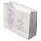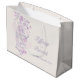 Montrez votre appréciation à un marié ou à vos accompagnateurs de mariage avec ce sac cadeau de mariage. Parfait pour remplir avec un cadeau spécial pour présenter vos félicitations ou à des invités pour votre appréciation. Un joli couple d'oiseaux en ligne dessin graphique d'une cage d'oiseau ouverte accrochée à un arbre de printemps fleuri avec des coeurs. Design moderne moderne moderne design de mariage partie de la cage d'oiseau romantique mariage fixe ensemble. Jolie teinte pastel violet et rose sur fond blanc cassé. Personnalisez / personnalisez ces gros sacs cadeaux de faveur avec vos détails de mariage marié et marié. Uniquement dessiné et dessiné par Sarah Trett.