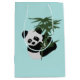 Illustration graphique d'ours panda avec le feuille en bambou. Éclairez vers le haut de votre occasion spéciale avec cette conception animale d'art. Vous pouvez customiser la couleur d'arrière - plan et choisir votre style préféré. Ces sacs de cadeau sont faits avec le papier de qualité de la meilleure qualité et imprimés avec l'encre vive pour faire le cadeau donnant vraiment spécial. Disponible dans quatre tailles et votre choix de la finition mate ou brillante.