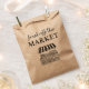 Offrez à vos invitées de la fête de mariage quelque chose à emporter et à montrer avec ces charmants sachets de kraft « Fresh Off the Market » (fraîchement cueillis) ! Ornés d'un dessin fait à la main représentant un stand de marché de fermiers et personnalisés avec le nom de la mariée et la date de l'événement, ces sachets en papier rustiques sont parfaits pour emballer des petits cadeaux, des friandises, des gâteaux ou des cadeaux inspirés des marchés locaux.