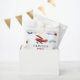 Envoyez vos invités d'anniversaire d'avion avec des faveurs ? Ajoutez la touche parfaite à vos sacs de fête d'anniversaire de l'avion vintage avec des étiquettes d'anniversaire d'anniversaire d'avion vintage. Modifiez et personnalisez facilement les détails de votre sac à dos avec le nom de votre petit. Ces sacs de faveur d'avion garçon ajoutent une touche spéciale et personnalisée à vos faveurs colorées d'anniversaire d'avion pour les invités de fête d'anniversaire. La collection PERCY est composée d'un arrière - plan blanc aux cieux nuageux et d'avions vintages en rouge, bleu et vert, avec des bannières d'avion et des drapeaux vintages colorés volant dans le ciel. Serif manuscrit et gras en bleu et rouge avec texte modifiable.