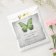 Sac de faveur de mariage élégant et simple avec un papillon vert contre un arrière - plan gris. Ce design est un choix unique pour un mariage moderne. Facile à customiser avec vos détails mariages. Cliquez sur "Customiser" pour trouver d'autres options de personnalisation.