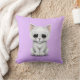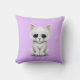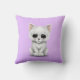 Sad Cute White Kitten Cat on Purple Throw Pillow