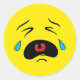 This sad little emoji face is having a bad day. Crying face with a bright yellow background.