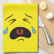 This sad little emoji face is having a bad day. Crying face with a bright yellow background. Sad Crying Face Emoji Funny kitchen towel.