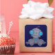 Vector cartoon illustration of a cute, but sad little robot with blue eyes sitting on the floor.