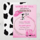 Invite your family and friends to celebrate your baby's 1st birthday with this pink, black and white cow print, pink, black, and brown invitation. Inside the lasso the date, time, and location is displayed for the invitees.