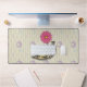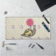 Sadie l'escargot cachemire sourit alors qu'elle se balade dans sa coquille rayée sous ses fleurs roses préférées. Un motif de vignes et de cercles funky est assis sur une base crème pâle pour créer un décor mignon pour la scène.
