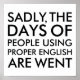 Sadly, The Days of People Using Proper English are Went. Funny Grammar Humour Saying / Quote / Slogan. Spelling Humour.