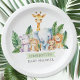 This safari adventure baby shower design showcases charming jungle animals including a hippo, giraffe, elephant, lion, monkey & tiger. Perfect for celebrating the arrival of a new bundle of joy. The vibrant colours and cute animal illustrations create a whimsical and playful atmosphere, setting the tone for a fun and memorable event. A delightful choice for any jungle-themed baby shower.