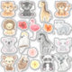 This 19-sticker pack features cute cartoon safari animals and hibiscus flowers.