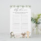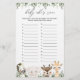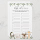 Lovely safari animals themed baby shower ABC's race game card features a watercolor safari animals illustration and watercolor greenery eucalyptus garland and elegant handwritten style font.