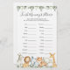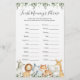 Safari animals themed baby shower finish mommy's phrase game card features a watercolor safari animals illustration and watercolor greenery eucalyptus garland and elegant handwritten style font.