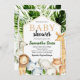 Bring the wild to your baby shower with this charming Safari Animals Baby Shower Invitation. Featuring a lovable jungle crew and lush greenery with a touch of gold sparkle. Perfect for a baby boy celebration, Whether you're planning a wild adventure or a jungle-inspired gathering, this invite sets the tone for a joyful and memorable day honouring the mom-to-be. BBS247
