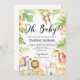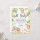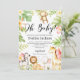 This is funny baby shower invitation featured cute safari animals and fresh greenery leaves