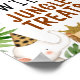 Cute safari or two wild themed birthday party sign featuring five cute watercolor animals, a cheetah print pattern and some foliage.