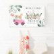 Safari Animals Drive By Baby Shower Greenery Gold Banner
