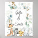 Cute four sitting safari or jungle animals and gold and grey eucalyptus foliage baby shower table top sign. Great for a gender neutral safari themed baby shower.