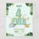 Get ready for a wildly adorable birthday bash! This budget-friendly Boys 4th Birthday Invitation, featuring cute safari animals (lions, elephants, zebras, giraffes, and hippos) is the perfect way to celebrate your little explorer turning 'Four Ever Wild.' With confetti adding to the fun, it's a jungle-themed party invitation you won't want to miss. Invite your friends and family for a roaring good time as you make memories together. Let's embark on this safari adventure together! The modern typography adds a stylish touch, while the boho elements create a trendy and playful atmosphere. The birthday boy and his guests will have a blast as they immerse themselves in the wild jungle surrounded by their favourite animals, including the mighty lion, gentle elephant, striped zebra, towering giraffe, and playful hippo.