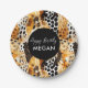 Safari Animals' Fur Prints Patterns Black and Gold Paper Plate