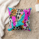 Beautiful safari animals' fur prints pattern throw pillows in neon-like luminous colours like fuchsia, bright blue - cyan.