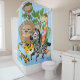 Shower curtain with safari animals including a giraffe, monkey, lion, zebra, and tiger as well as jungle plants, great for kids who love wild animals, safari animals, zoo animals!