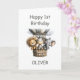 Celebrate a little one’s big milestone with this 1st birthday card featuring a lion, zebra and elephant in a hot air balloon.