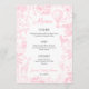 Elegant Pink Toile de Jouy Floral Baby Shower menu, featuring a charming safari animal theme. This beautifully designed menu template showcases a hot air balloon along with adorable safari animals like a giraffe, elephant, zebra, and lion, all set against a pink floral chinoiserie background. With its vintage aesthetic and graceful typography, this menus template sets the tone for a timeless celebration. Fully customizable to match your event details, it's the perfect choice for a girl's safari-themed baby shower, blending charm and sophistication.
