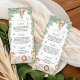 A safari-themed baby shower menu template featuring watercolor jungle animals and tropical greenery. Designed to present starter, entree, and dessert options in an elegant layout. Perfect for Wild One, jungle, or gender-neutral baby shower themes and coordinated party stationery sets.