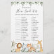 Safari animals themed baby shower pregnancy how sweet it is game card features a watercolor safari animals illustration and watercolor greenery eucalyptus garland and elegant handwritten style font.