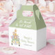 Cute baby shower thank you favour box featuring a watercolor illustration of baby animals (lion, zebra, elephant, giraffe and monkey) piled into a safari vehicle and "Thank You So Much," "It's About To Get Wild" the mother's name in jungle green script.