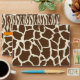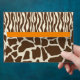Sweet safari prints in giraffe, zebra, and cheetah with orange accent.