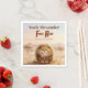Safari theme first birthday party napkins featuring an original character from the Hystrix Little Thoughts® collection. This design features Zuberi: a charming fluffy leopard character, whose name means “strong” and “powerful,” adding a meaningful and symbolic touch to this “First Roar” birthday. Set in a soft watercolor African safari landscape with warm earth tones, gentle hills, and acacia trees, this invitation creates a sweet and adventurous atmosphere, perfect for a wild one safari party or baby boy first birthday.