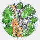 Safari friends, giraffe, zebra, tiger, palm leaves classic round sticker