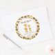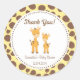 Round sticker for baby shower favour with safari animal theme and giraffe design.