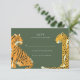 Safari rsvp wedding invitation card features Jungle tiger and leopard. Green leopard print on back.