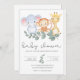Baby jungle animals, elephant, monkey giraffe designs baby shower invitation. A modern safari style theme baby shower.