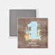 Cute safari jungle animals featuring a zebra, elephant, lion, monkey & giraffe with an assortment of jungle leaves framing a big blue one set on a brown wood background. Visit our shop to view our entire jungle safari birthday collection!