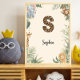 Bring warmth and charm to your child’s room with this safari personalized name and monogram nursery wall art, featuring a soft jungle background and a bold 3D cheetah-pattern letter S
