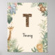 Safari Jungle Personalized Name Monogram T Nursery Poster