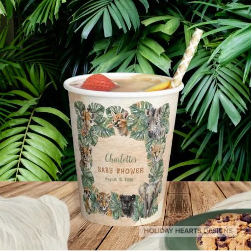 Safari Jungle Wild Animals Neutral Baby Shower Paper Cups