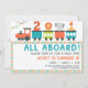 Un train safari moderne pour l'anniversaire de votre petit. Disponible pour tous les âges et vient en bleu/orange/vert aussi bien dans mon magasin Zazzle. Enveloppes blanches standard incluses dans le prix.