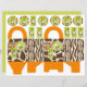 Zebra, cheetah, and giraffe prints with 3D look bow and trim and cute monkey and pacifier tags for baby boy gift basket design template with pacifier and giraffe cupcake toppers. Picks not included. Assembly required.